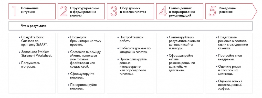 Могу перечислить этапы, из которых состоит решение кейсов.