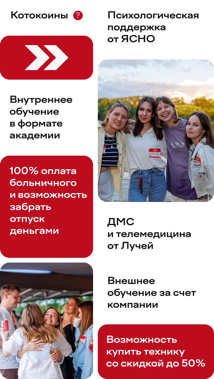 У нас можно не бояться быть собой. Уникальность каждого из нас — двигатель, который позволяет всей команде идти вперед, обмениваться опытом и раскрывать потенциал.
