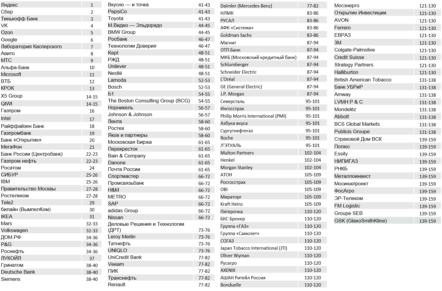 * В прошлом году фактор назывался «Возможность международной карьеры»